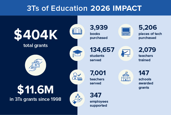 Over the past 27 years, the Pacific Life Foundation is honored to have contributed over $11.6 million to strengthening the learning environment in hundreds of K-12 schools across the U.S. We do this by supporting those schools with the highest concentrations of children and grandchildren of Pacific Life employees. Developed in 1998, the 3Ts of Education Grants Program funds K-12 education focused on: Teacher Training, Technology, and Textbooks, as designated by each school’s principal.