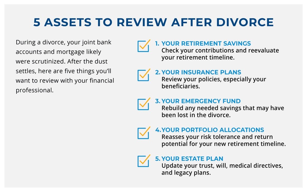 Your future may be wide open after divorce—and that includes your financial plan. You should reassess what your future will look like, and how your income and assets will help you pay for it. While you’re busy planning for the future, remember that your current financial responsibilities and budget may change significantly. If you filed taxes as a couple, filing them on your own may change the tax bracket you fall into and may change any deductions you can claim.3