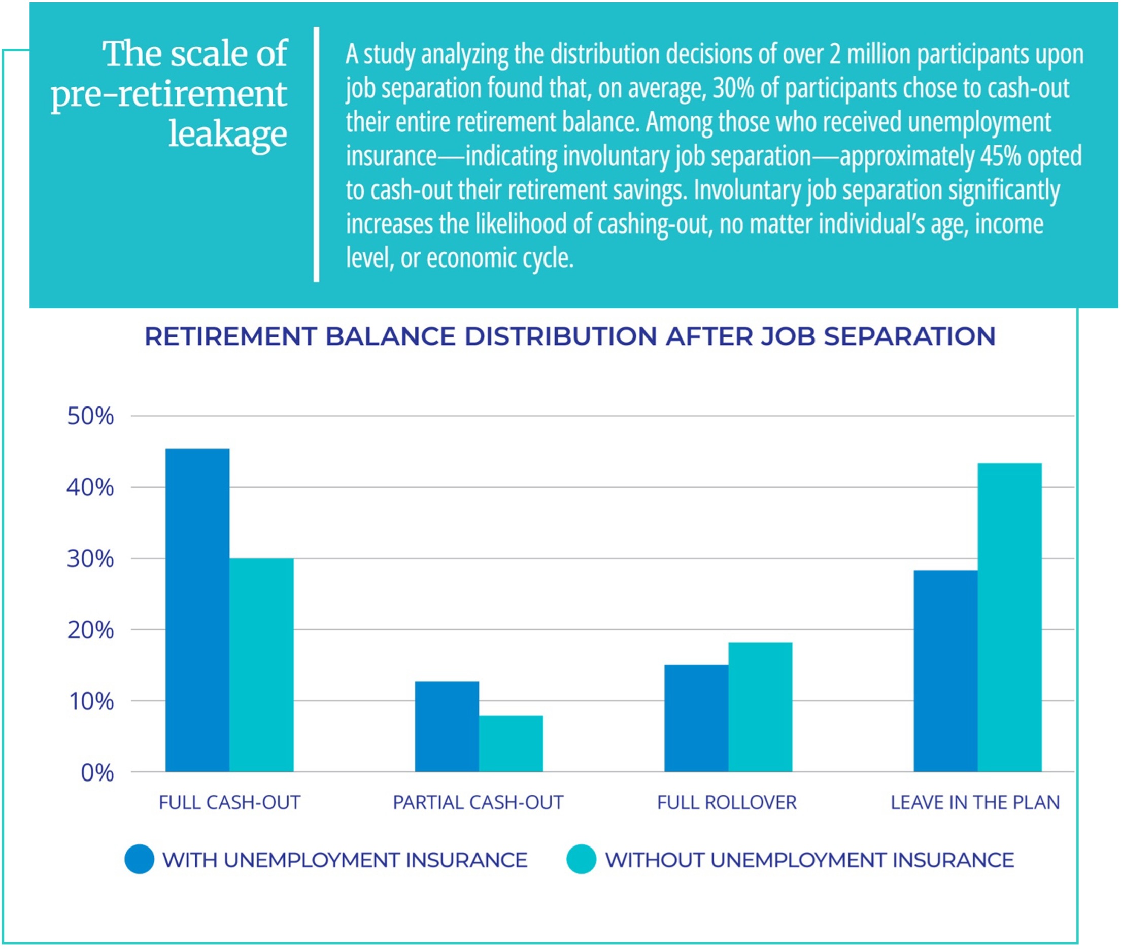 Pre-retirement leakage is a major barrier for younger participants who are attempting to build sufficient retirement wealth, ultimately limiting their ability to leverage guaranteed lifetime income solutions for longevity protection. Whether it's the early-career challenge of cashing-out small account balances or the difficulty of transferring insurance-backed lifetime income products when changing jobs near retirement, pre-retirement leakage due to portability remains the top threat for millions of upcoming Gen X and millennial retirees.
