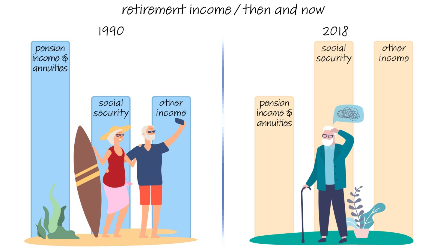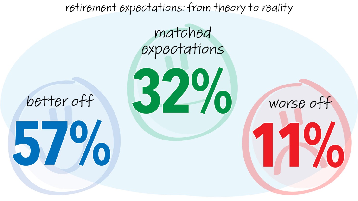 Of respondents who entered retirement between 1994 and 2018, only around 32% of them reported feelings that aligned with their pre-retirement expectations, and the remaining 66% did not.² What caught my attention is that about 10% of the retirees felt their retirement life was worse than expected. This situation worsens for those who recently entered retirement.