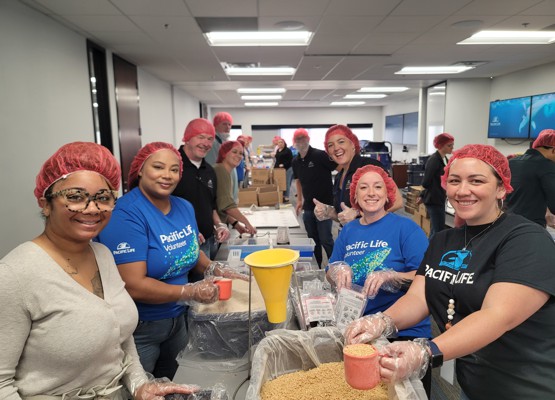 From late September to later October, Pacific Life teams across 9 global offices came together for a powerful Week of Service – dedicating time to pack meals, assemble kits, and serve local communities. In total, 132,000+ meals and kits were assembled for families in need.